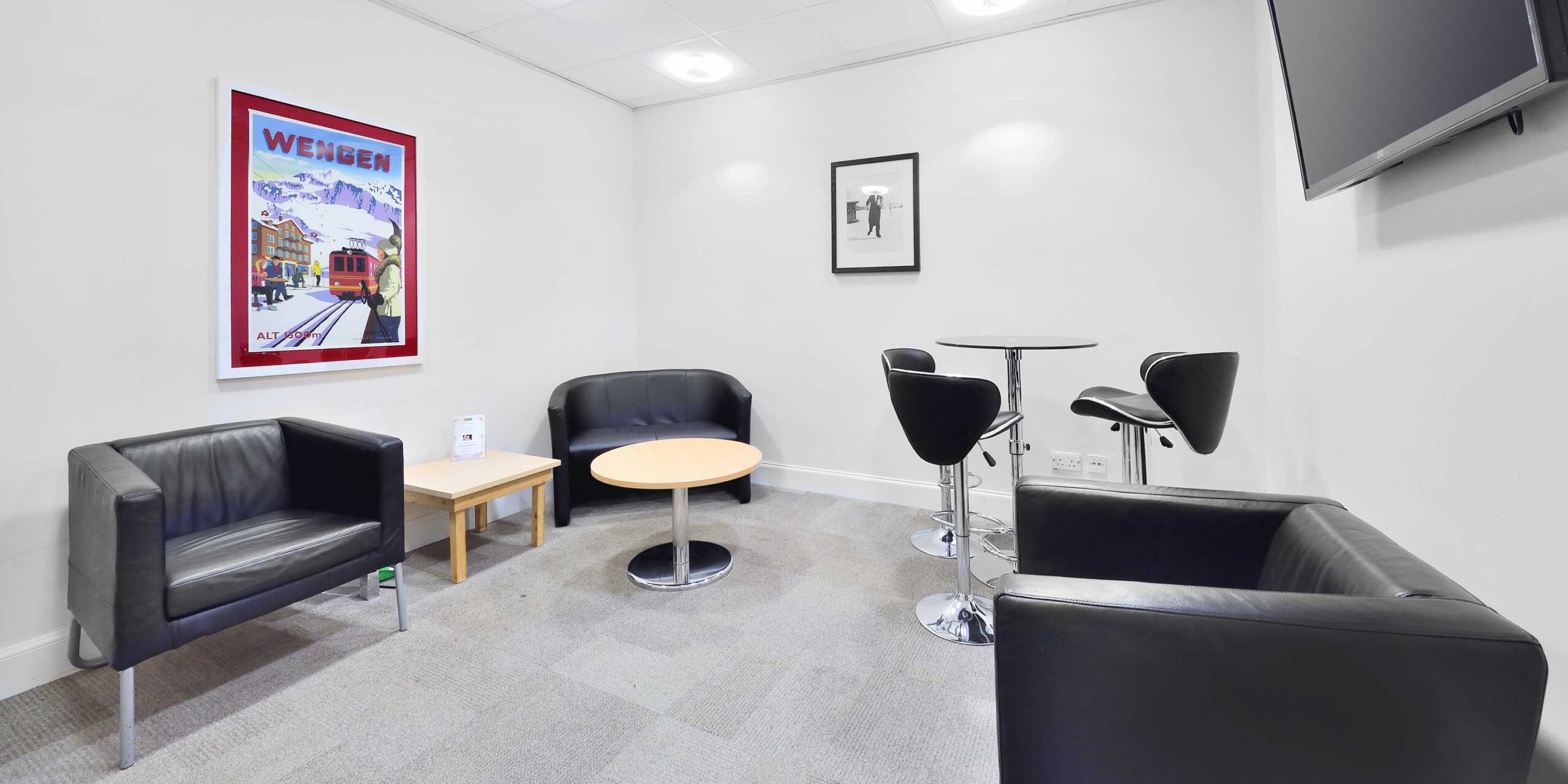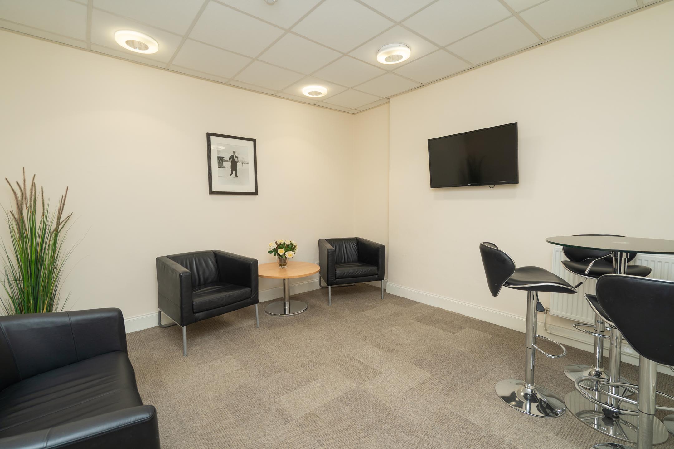 Our communal area has an adjacent kitchen, flat-screen TV and comfy seating so you can relax. We also have a number of phone booth rooms that are fully sound-proofed, so you can make private calls without any distractions.