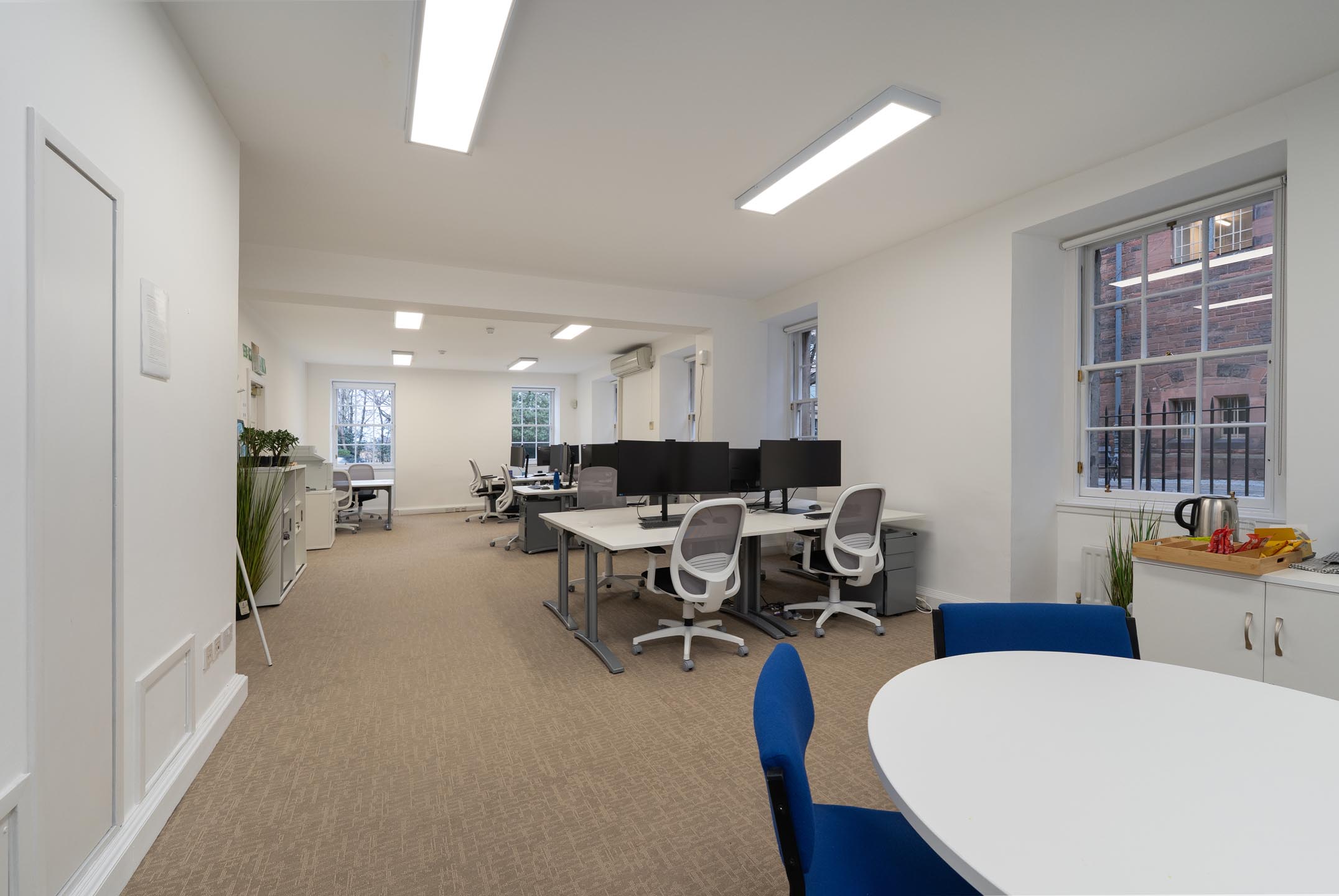 Elegantly refurbished, North Saint David Street is equipped to service a variety of businesses – from single-desk start-ups and SMEs, to large corporates looking to accommodate up to 30 employees. All our rooms have natural light, free Wi-fi and free UK landline calls. Dedicated broadband packages for higher usage are also available.